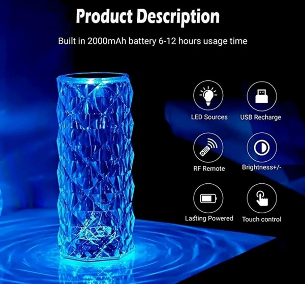Name - Crystal Rose Table Lamp 16 Colour LED Night Lights For Room Decoration.